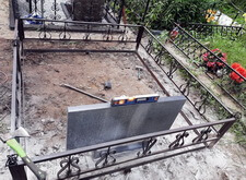 В ходе работы над данным заказом нам предстояло: переустановить покосившийся широкий памятник из чёрного гранита; покрасить обветшавшее от времени ограждение; обновить надписи на надгробье; установить прямоугольный цветник, а также выложить землю на участке гранитной брусчаткой. Приехав на место захоронения мы застали могилу в заброшенном состоянии: на всей её территории росла сорная трава, практически полностью скрывавшая памятник.